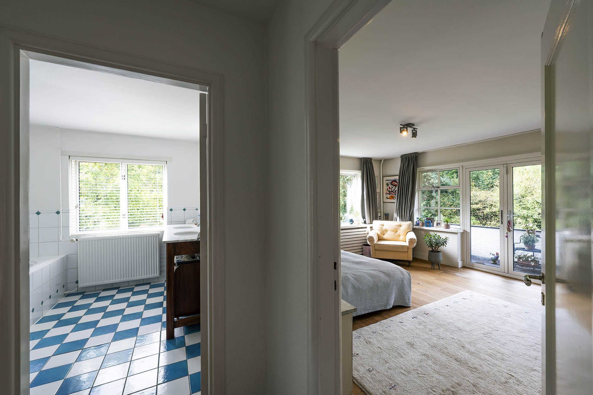 De eerste verdieping beschikt over drie ruime slaapkamers en een praktische indeling met veel bergruimte. Aan de achterzijde bevindt zich de royale hoofdslaapkamer, voorzien van vaste kasten en een aangrenzende kleedkamer. De tweede slaapkamer ligt aan de voorzijde en geeft toegang tot een fijn balkon, ideaal om in de ochtendzon te genieten van een kop koffie. De derde slaapkamer is eveneens goed bemeten en beschikt over extra kastruimte. De verzorgde badkamer is centraal gelegen en uitgerust met ligbad, separate douche, dubbele wastafel en vloerverwarming. Daarnaast is er een separaat toilet. Tevens is er een berging met opstelling CV-ketel aanwezig, bereikbaar via de slaapkamer aan de achterzijde. Dankzij de ruime overloop en de logische indeling is de verdieping zowel praktisch als comfortabel in gebruik, met volop mogelijkheden voor een gezin.