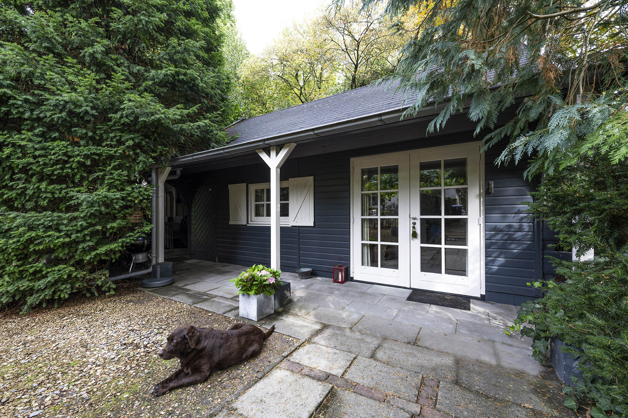 Achter op het ruime perceel staat een multifunctioneel bijgebouw met een oppervlakte van ca. 23 m². Het bijgebouw is voorzien van een overkapping, berging en leefruimte met aparte kamer en eigen badkamer. De badkamer is voorzien van een douche, wastafel en wc. Dit alles maakt dat het bijgebouw ideaal is voor logees of als hobby/ atelierruimte.