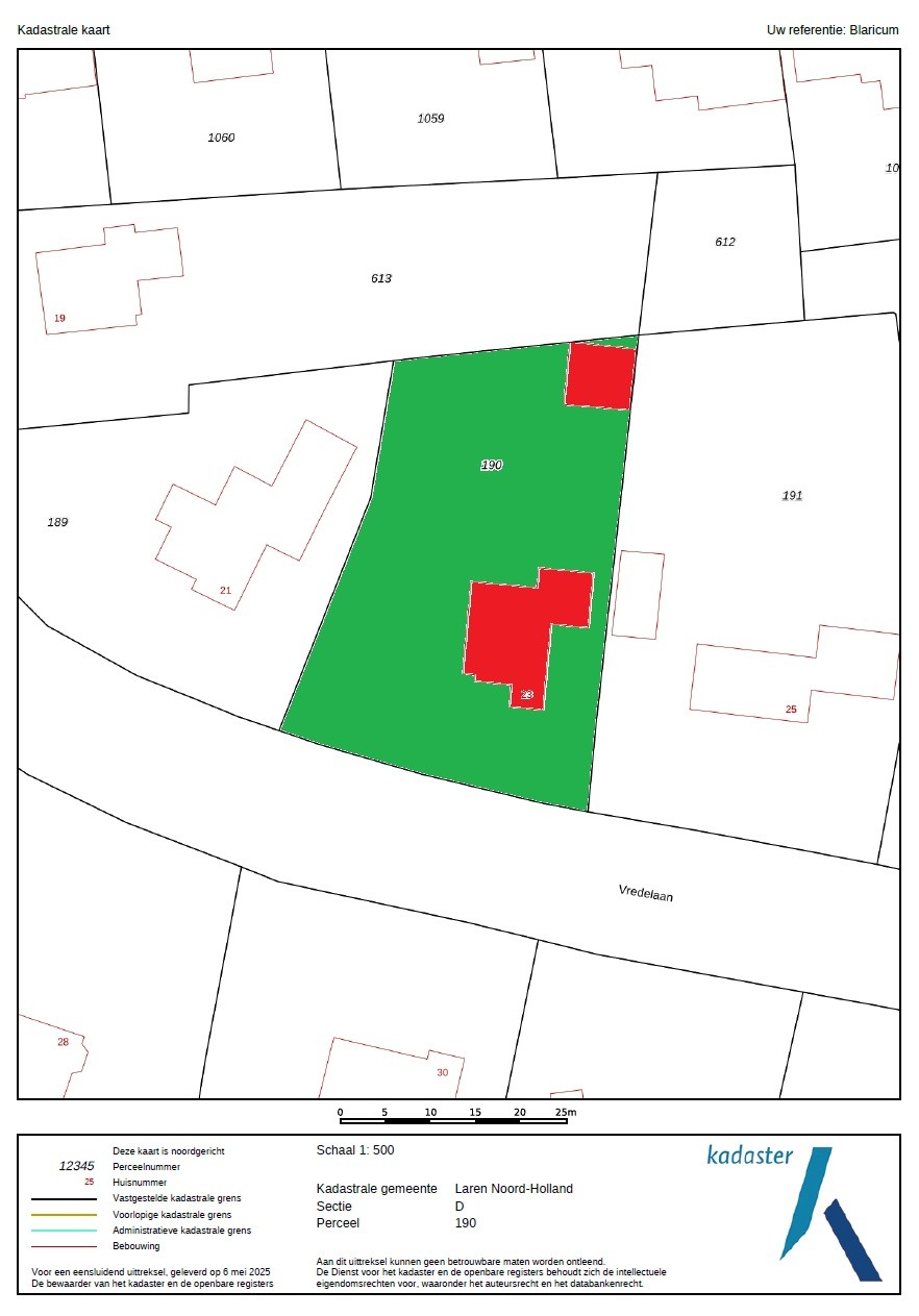 De Vredelaan is een rustige, lommerrijke laan aan de rand van Laren. Vanuit deze locatie woont u op korte afstand van het pittoreske dorpscentrum met zijn exclusieve winkels, kunstgaleries, cafés en restaurants. Ook scholen, sportclubs en andere voorzieningen zijn binnen enkele minuten bereikbaar.