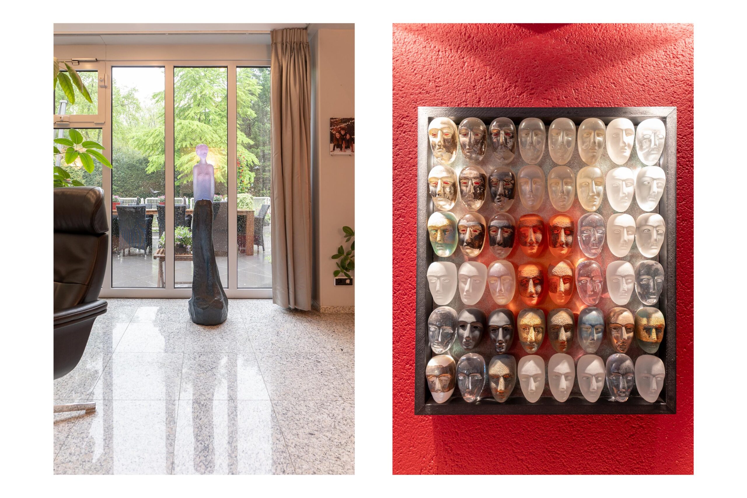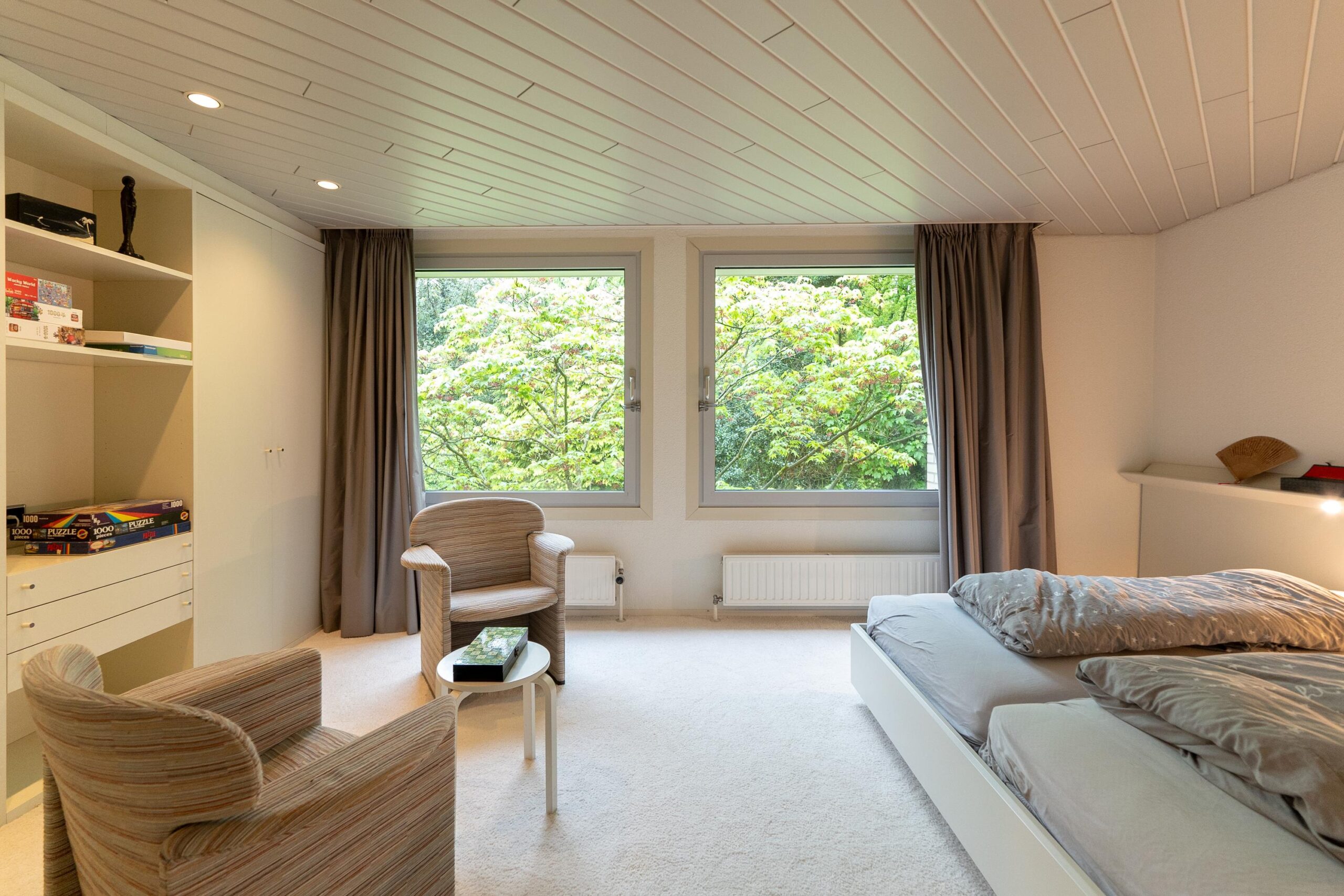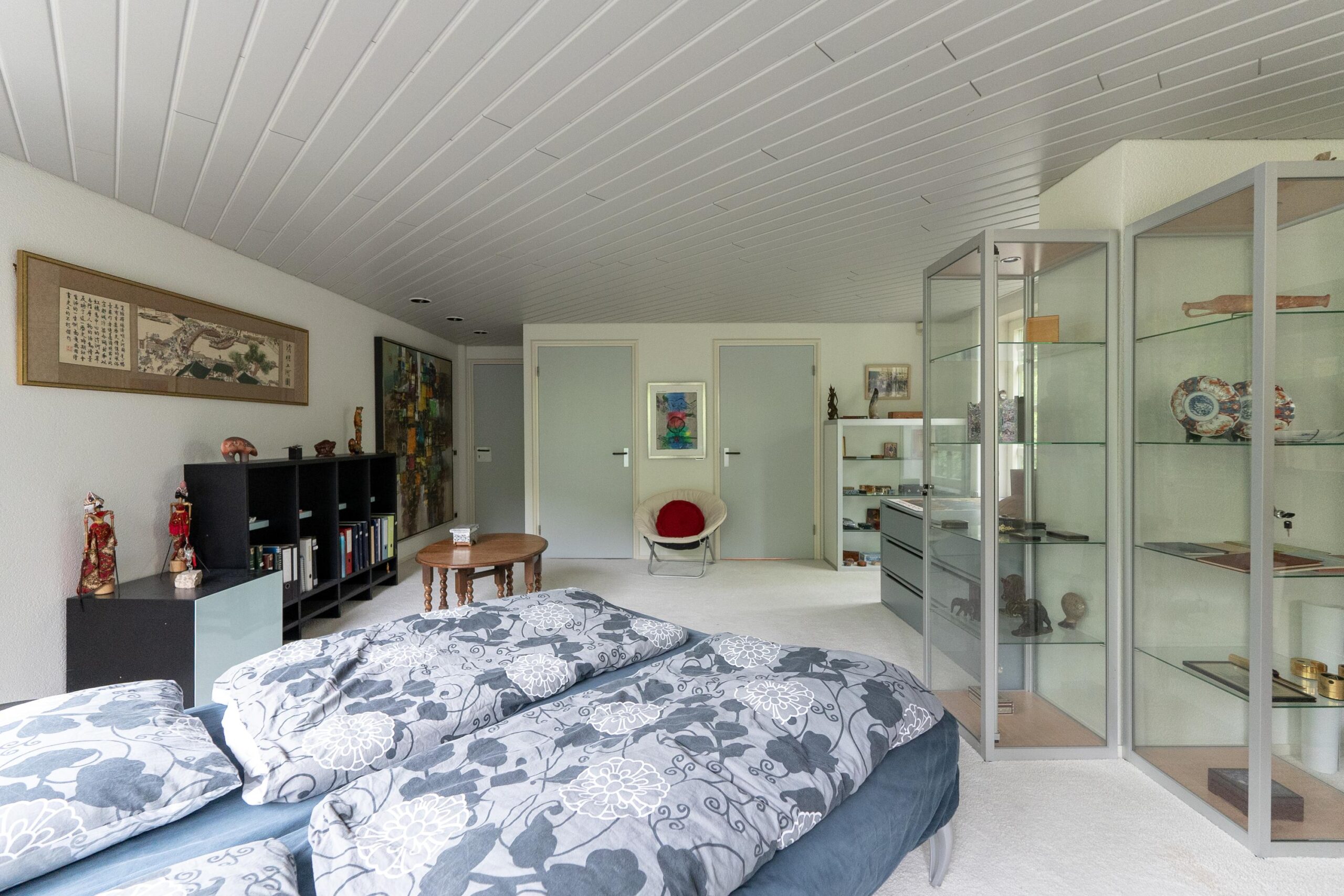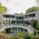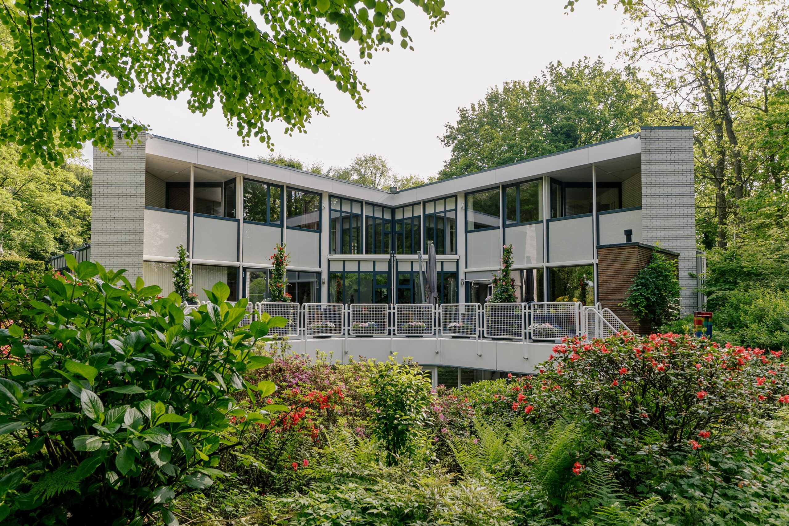 De bijzondere plattegrond van dit pand doet denken aan een Tangram-puzzel, met overlappende geometrische vormen waardoor overal spannende zichtlijnen en 'hoekjes' ontstaan.