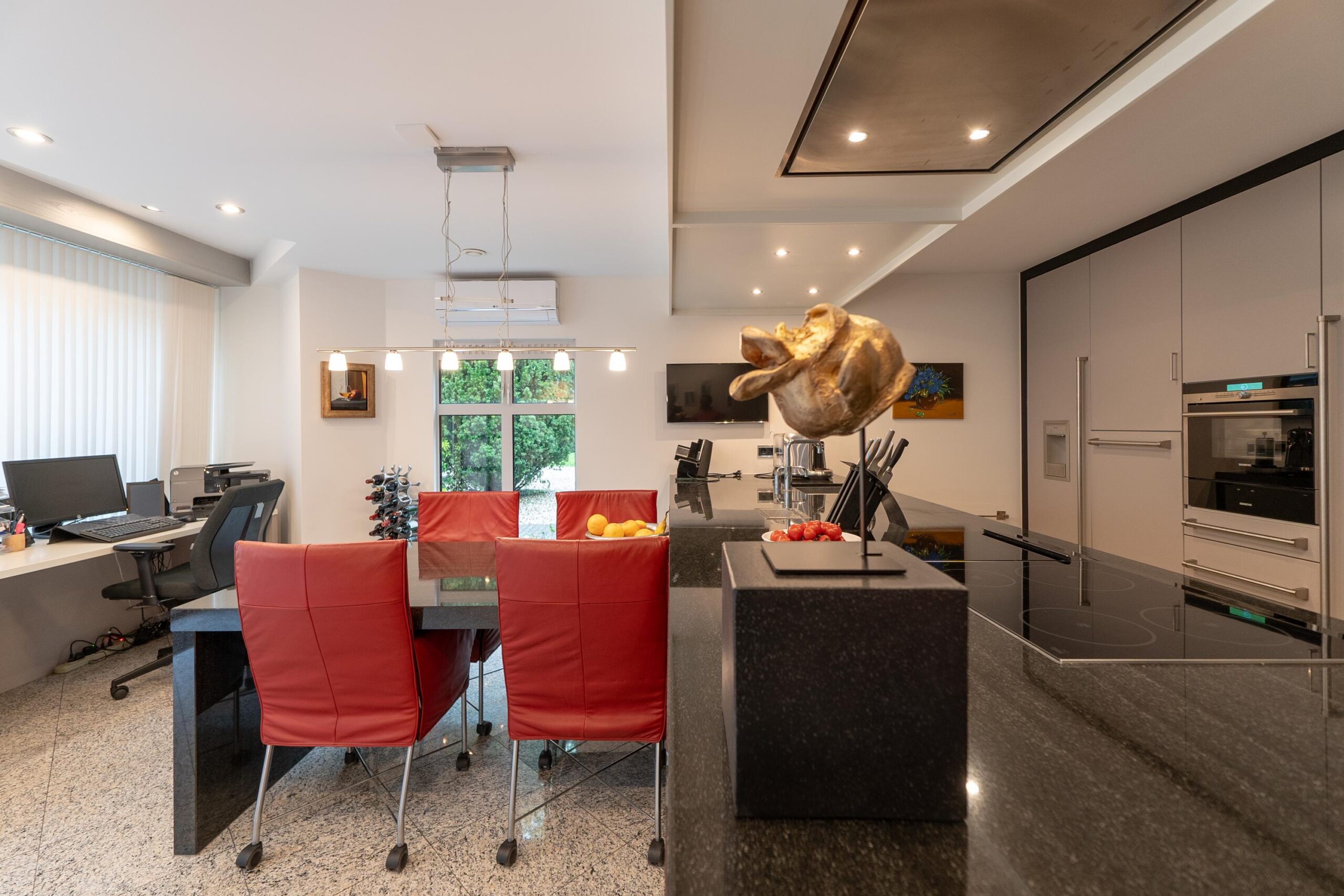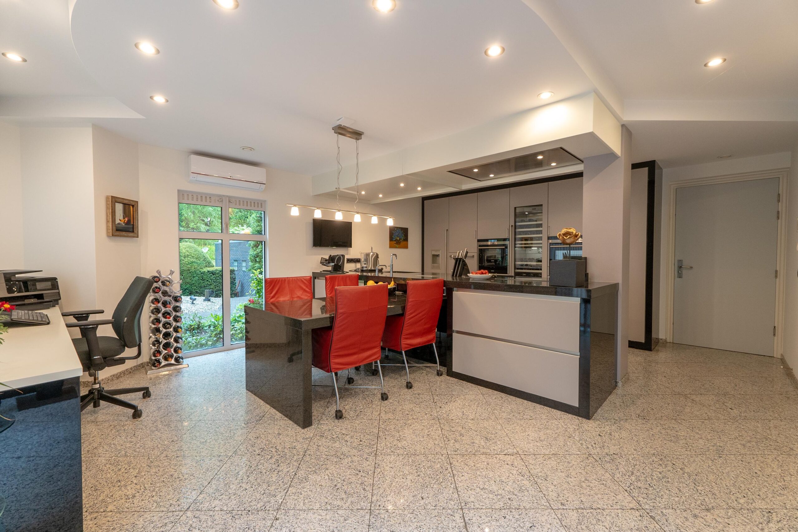 Voor de chefs onder u: de keukenapparatuur is van superieure kwaliteit (Gaggenau). En voor kunstliefhebbers: het lichtplan is indrukwekkend.