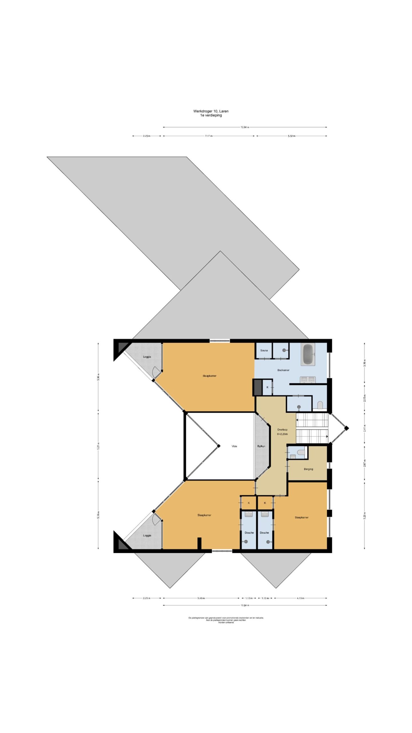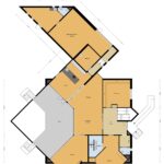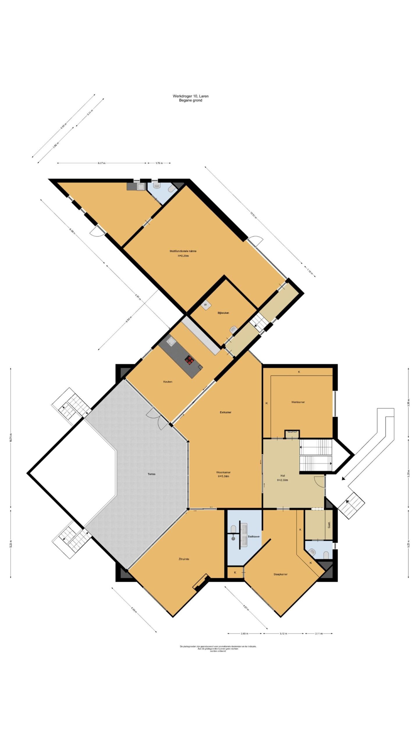 De bijzondere plattegrond van dit pand doet denken aan een Tangram-puzzel, met overlappende…
