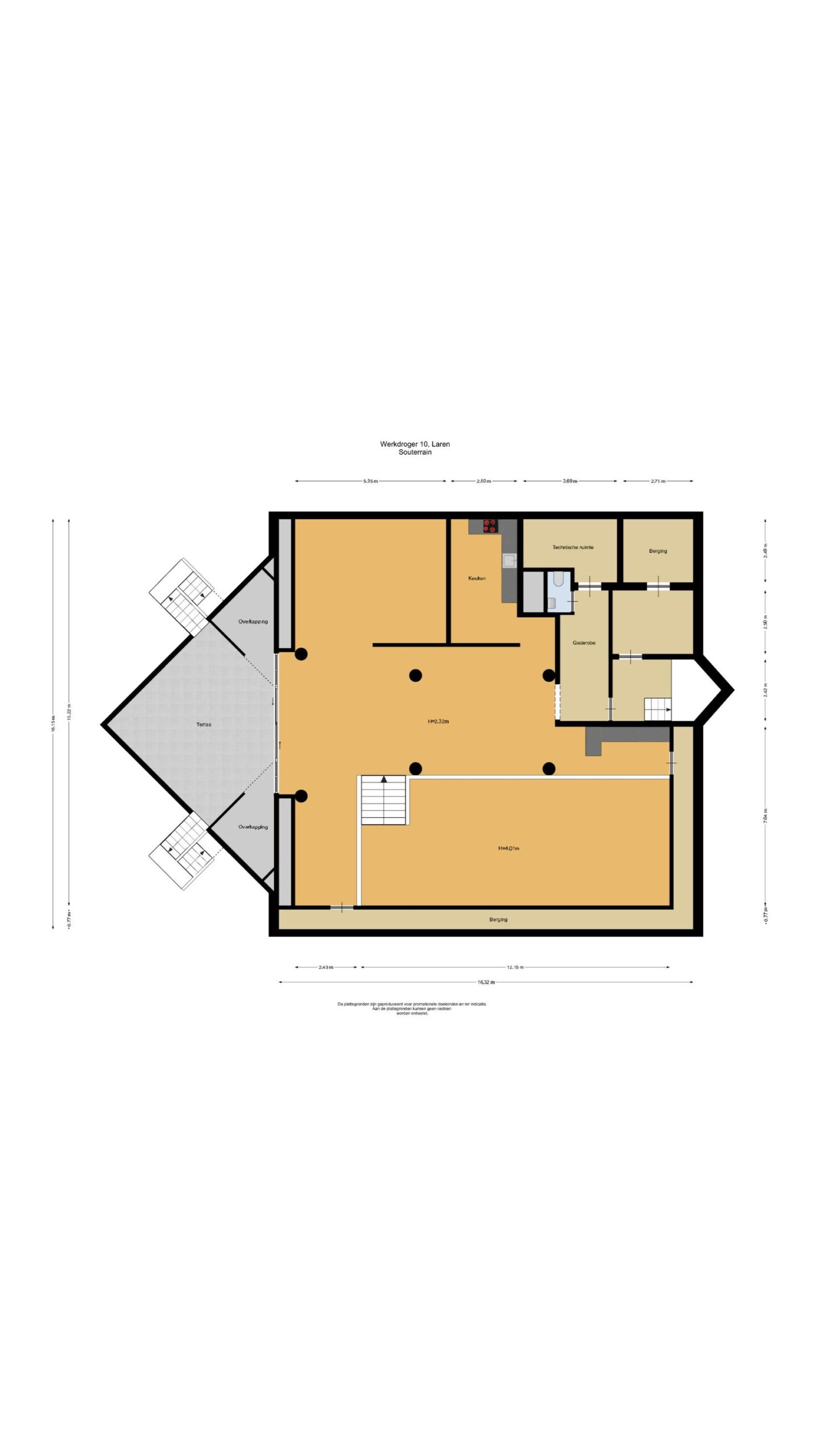 Onder de (demontabele) vloer van het souterrain bevindt zich een extra verdiept gedeelte, waar zich het zwembad bevindt.
