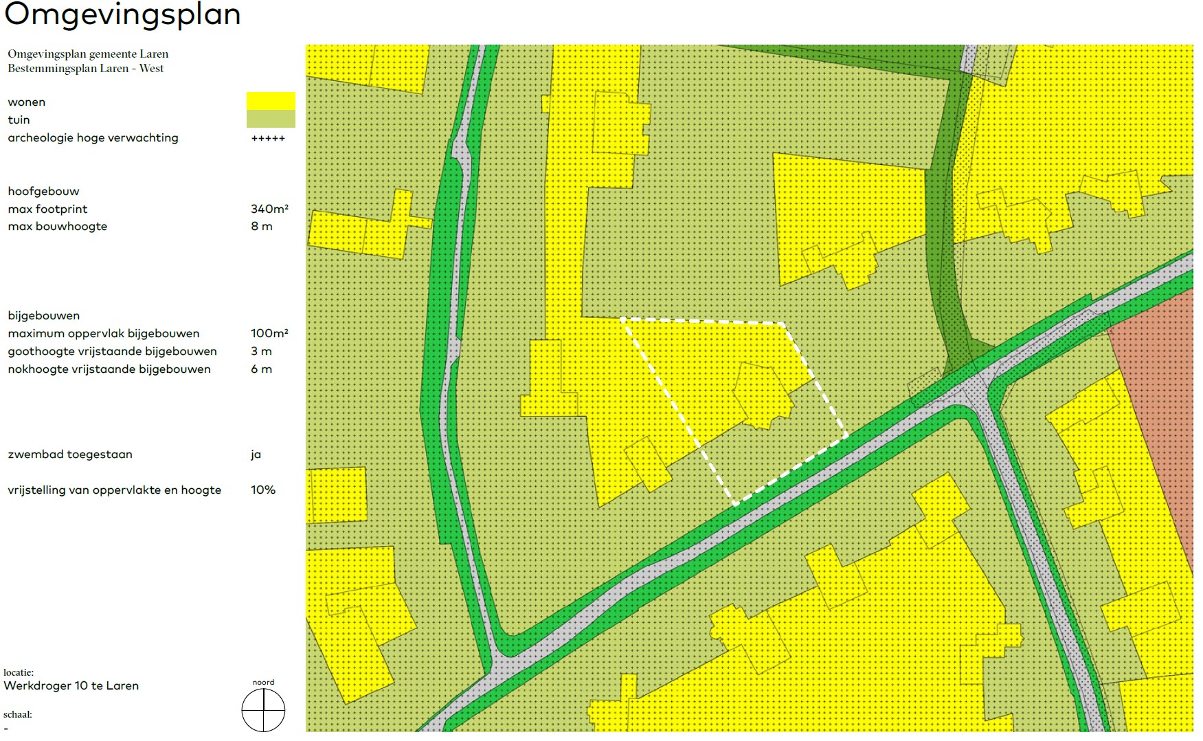 - Maximaal oppervlakte van het bijgebouw: 100 m² binnen bestemming WONEN