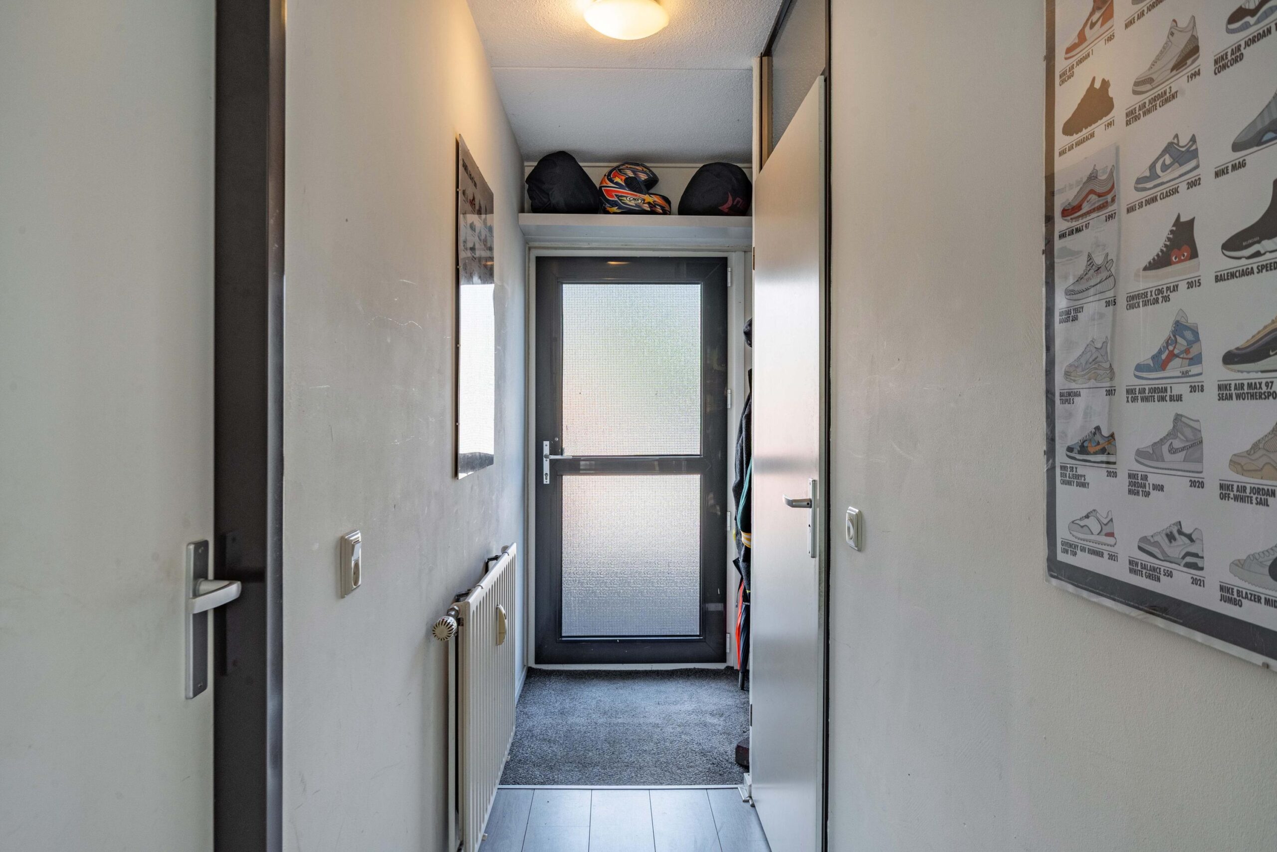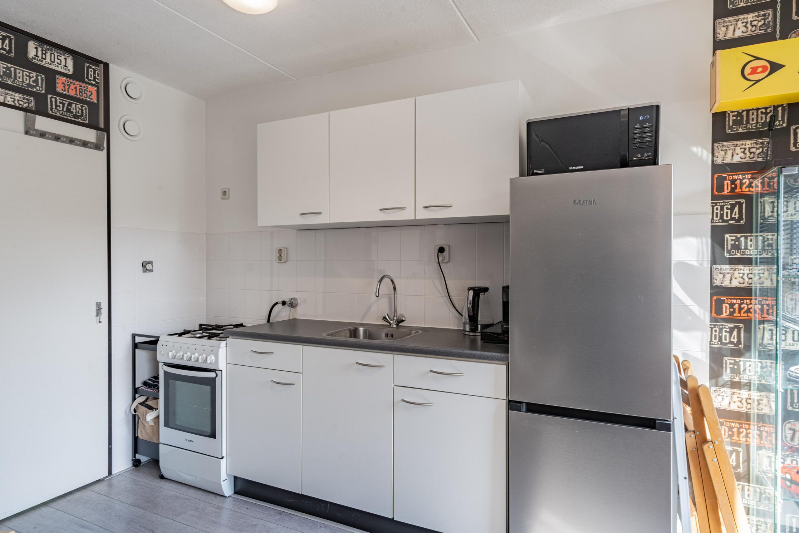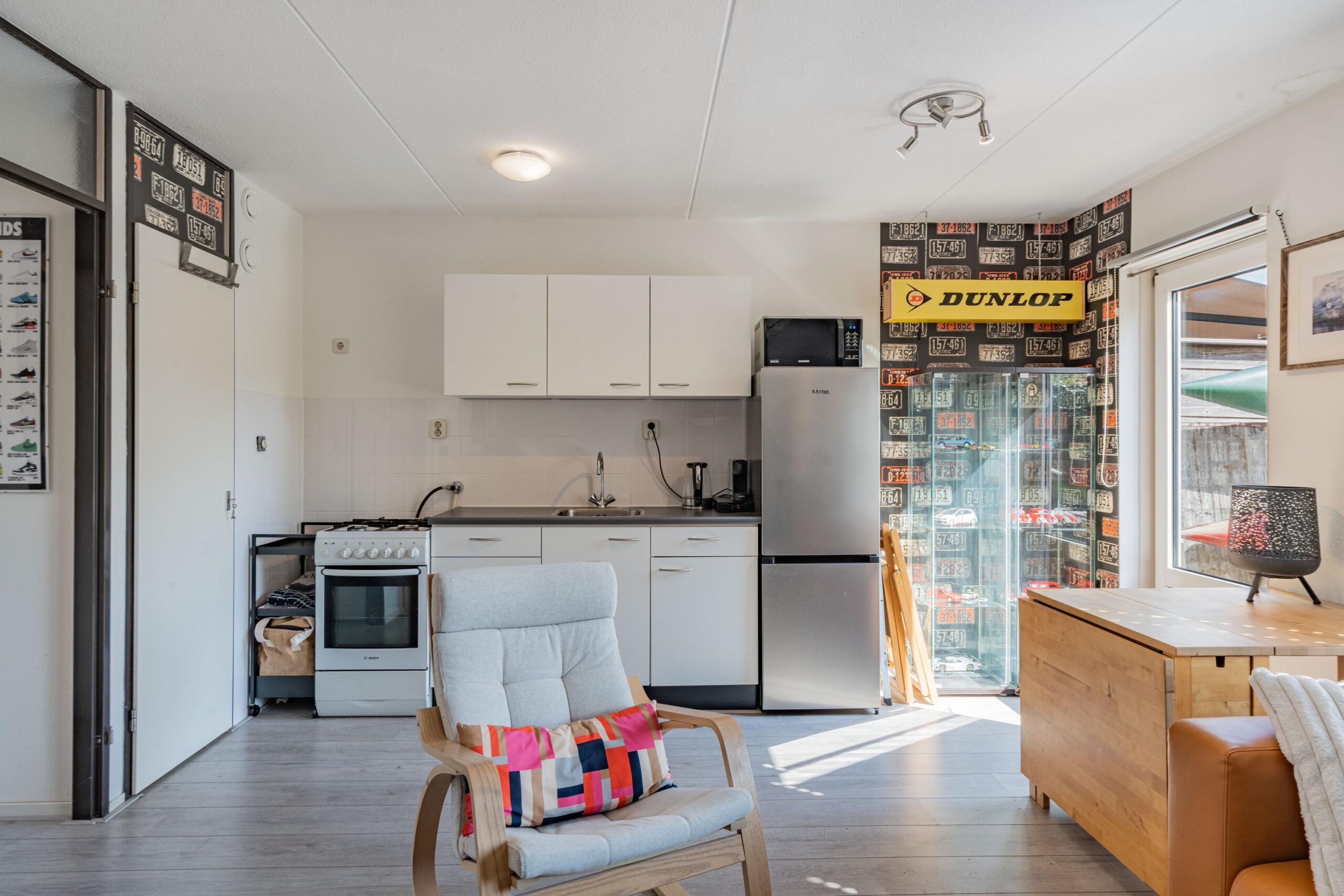 Via de entree en hal bereik je de badkamer met douche, wastafel, toilet en aansluiting voor de wasmachine. De slaapkamer biedt ruimte voor een tweepersoonsbed en kast.