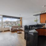 Indeling: entree, ruime hal met diverse vaste kasten, slaapkamer met kastenwand, badkamer met inloopdouche, toilet, wastafel en aansluiting wasmachine, heerlijke lichte woon/eetkamer met bruynzeel parket, half open Siemetic keuken met vaatwasser, kookplaat, afzuigkap en 2 koelkasten (niet alles functioneert), zonnig terras over de gehele breedte met vrij uitzicht op het zuiden gelegen.