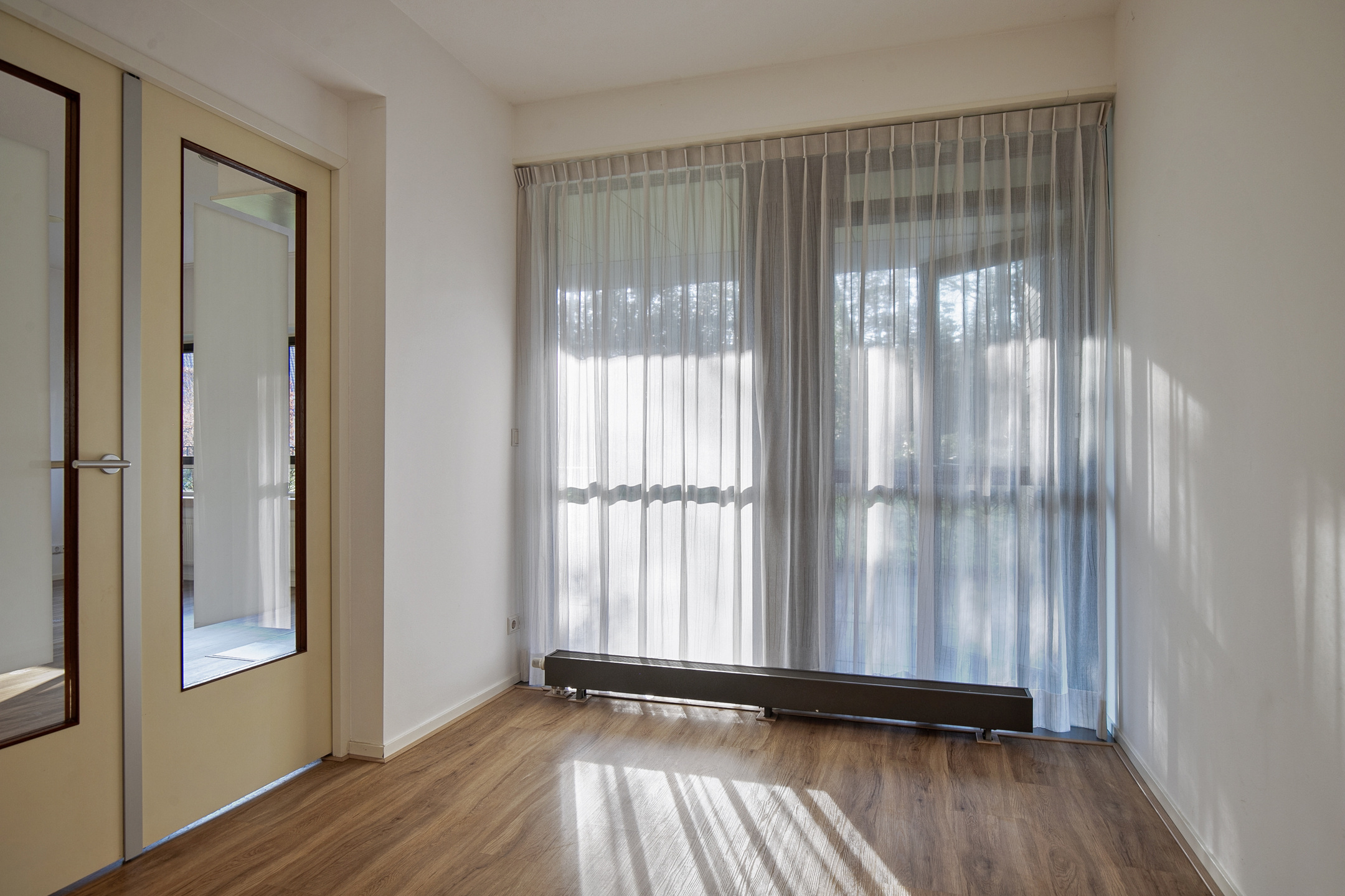 Appartement: ruime hal met modern toilet v.v. fonteintje (2026). Heerlijke, ruime living met toegang tot het terras. De keuken is voorzien van diverse inbouwapparatuur. Vanuit de woonkamer is een lichte werk-/slaapkamer bereikbaar (thans werkkamer). Er is tevens een ruime slaapkamer. De moderne badkamer (2026) beschikt over een ligbad, een douche en een dubbel wastafelmeubel. Er is een separate wasruimte met aansluitingen voor de wasmachine en droger alsmede opstelling cv.