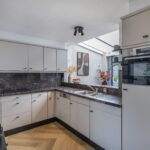 De keuken is praktisch ingedeeld en voorzien van diverse inbouwapparatuur, waaronder een kookplaat, combi-oven, afzuigkap, koelkast en vaatwasser.