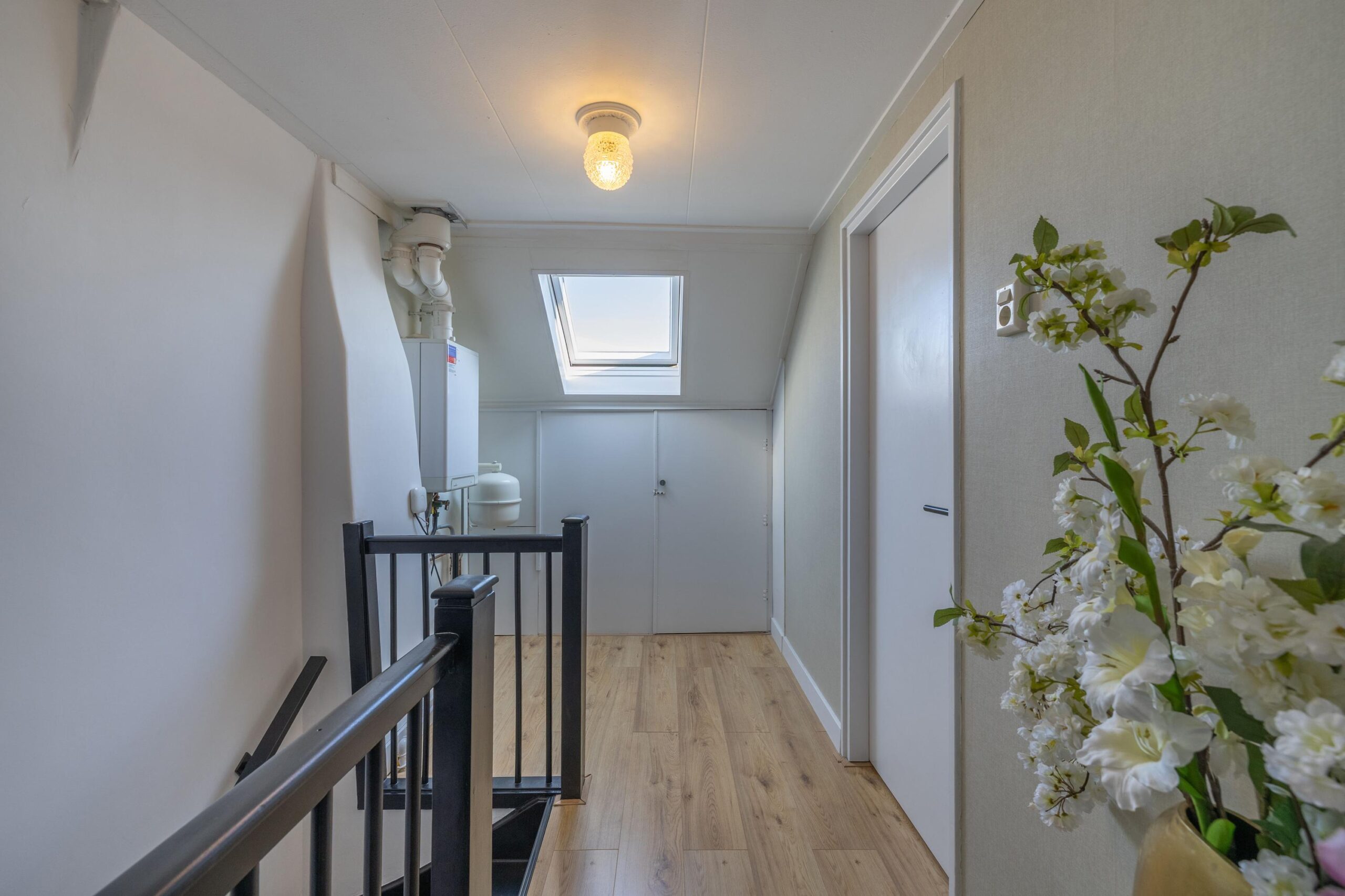 Via een vaste trap bereikt u de tweede verdieping. Hier bevindt zich de voorzolder met dakraam en de opstelling van de cv-ketel. Daarnaast is hier een volwaardige vierde slaapkamer met dakkapel, wat deze verdieping ideaal maakt als slaapkamer, werkruimte of hobbykamer.