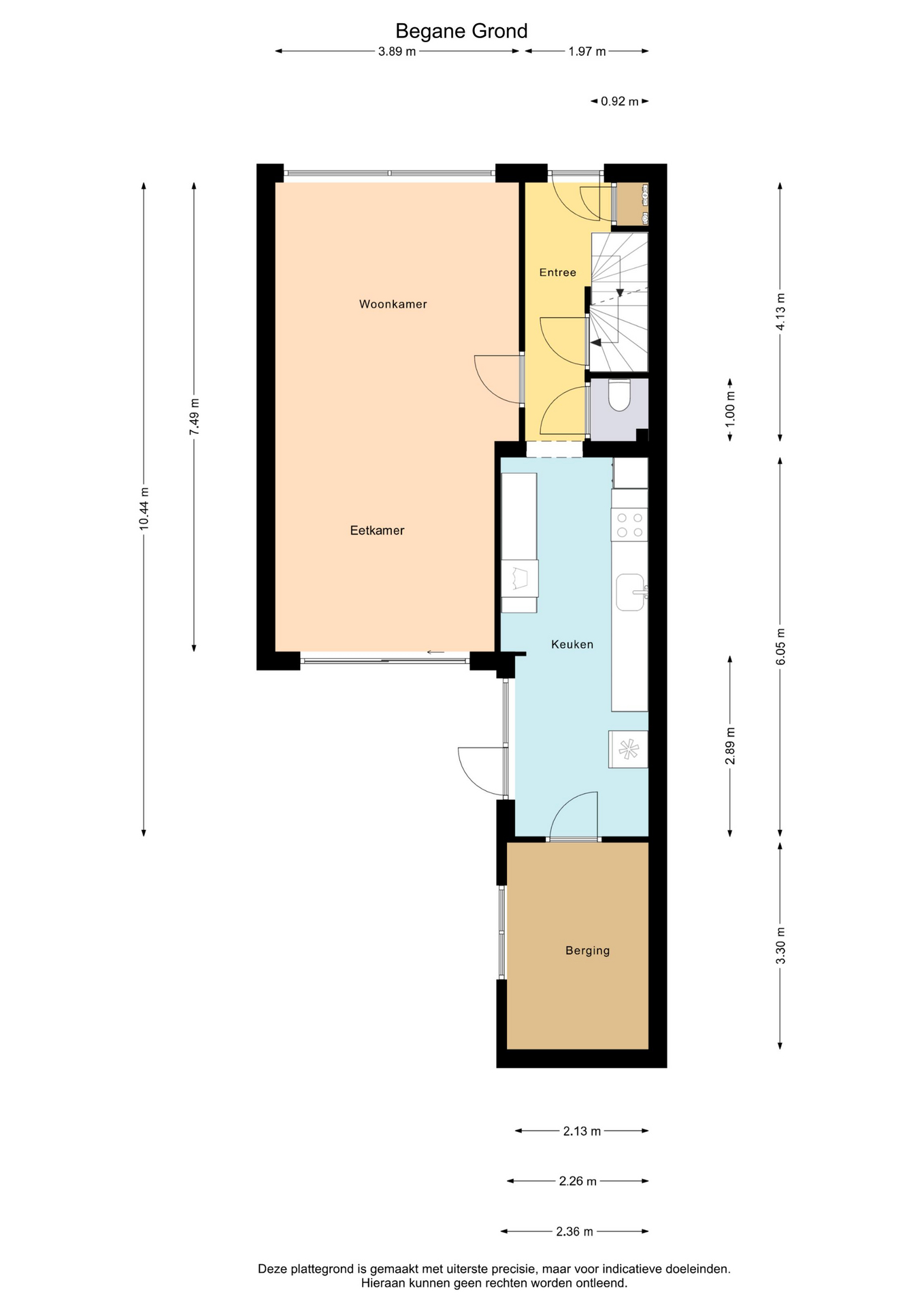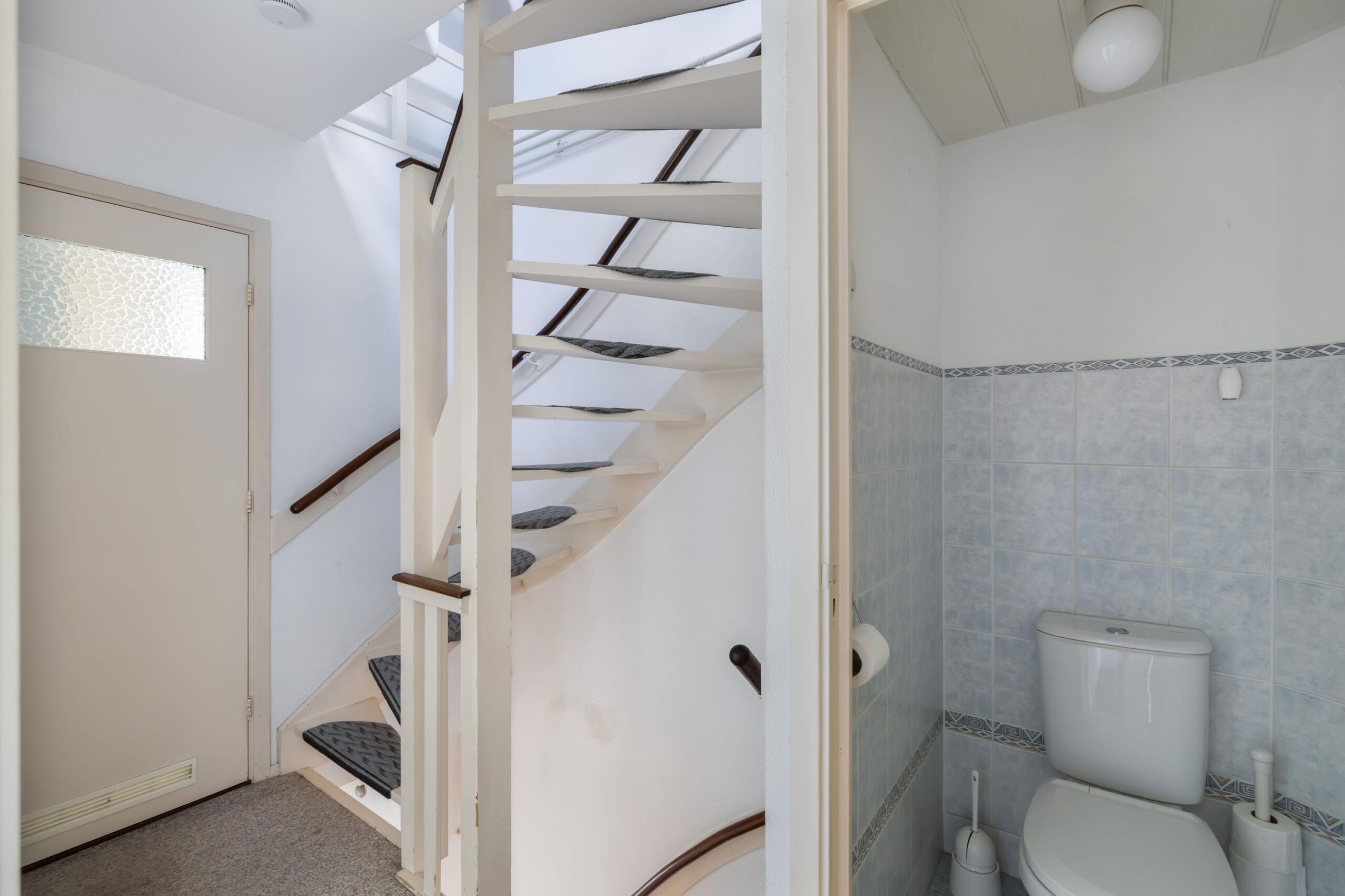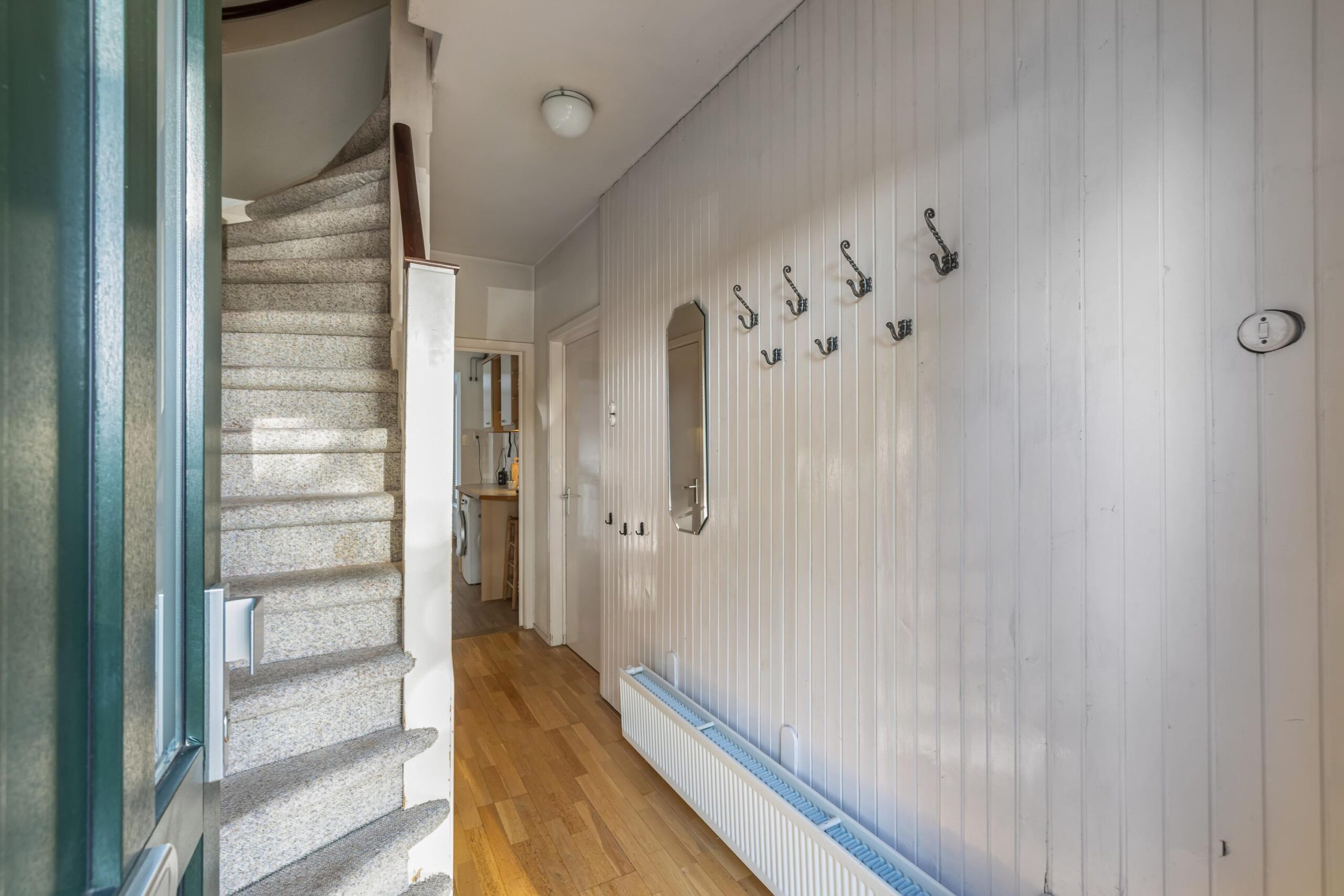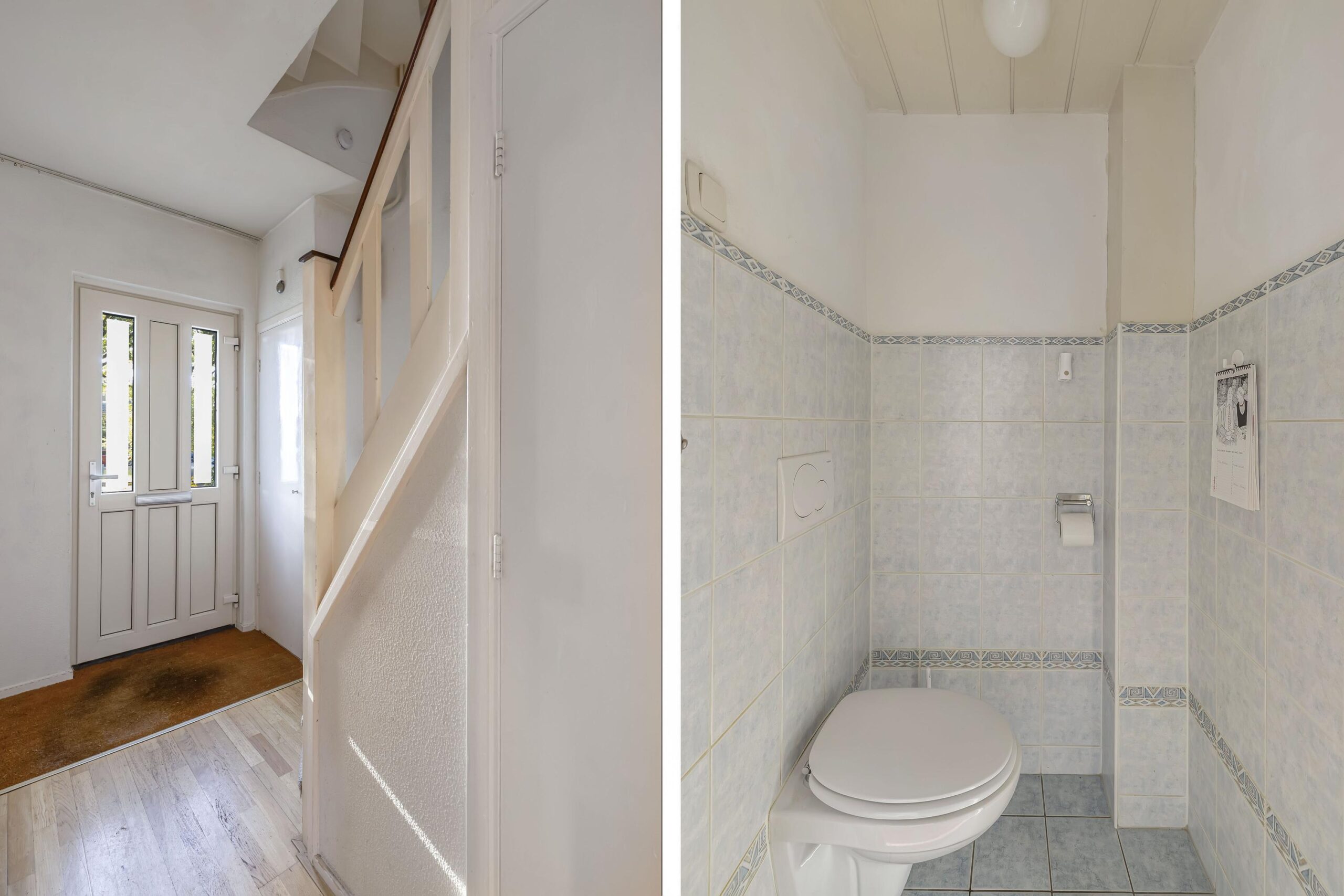 Entree, meterkast, hal met de trapopgang naar de verdieping, toegang naar de provisiekelder, toilet en deur naar de woonkamer en doorgang naar de keuken en berging.