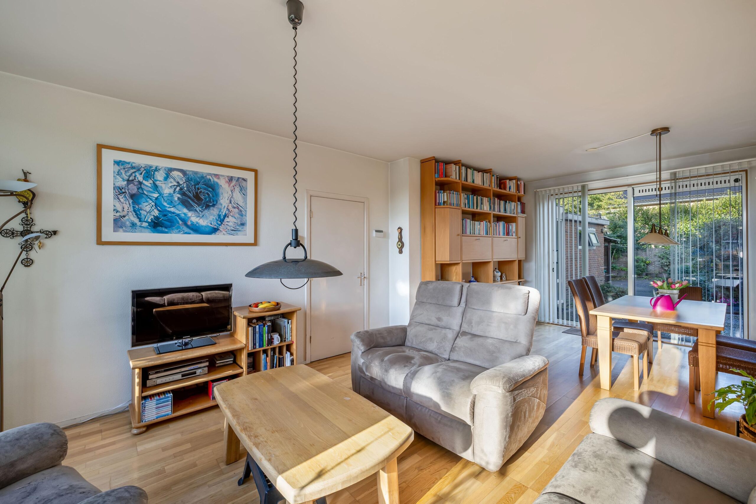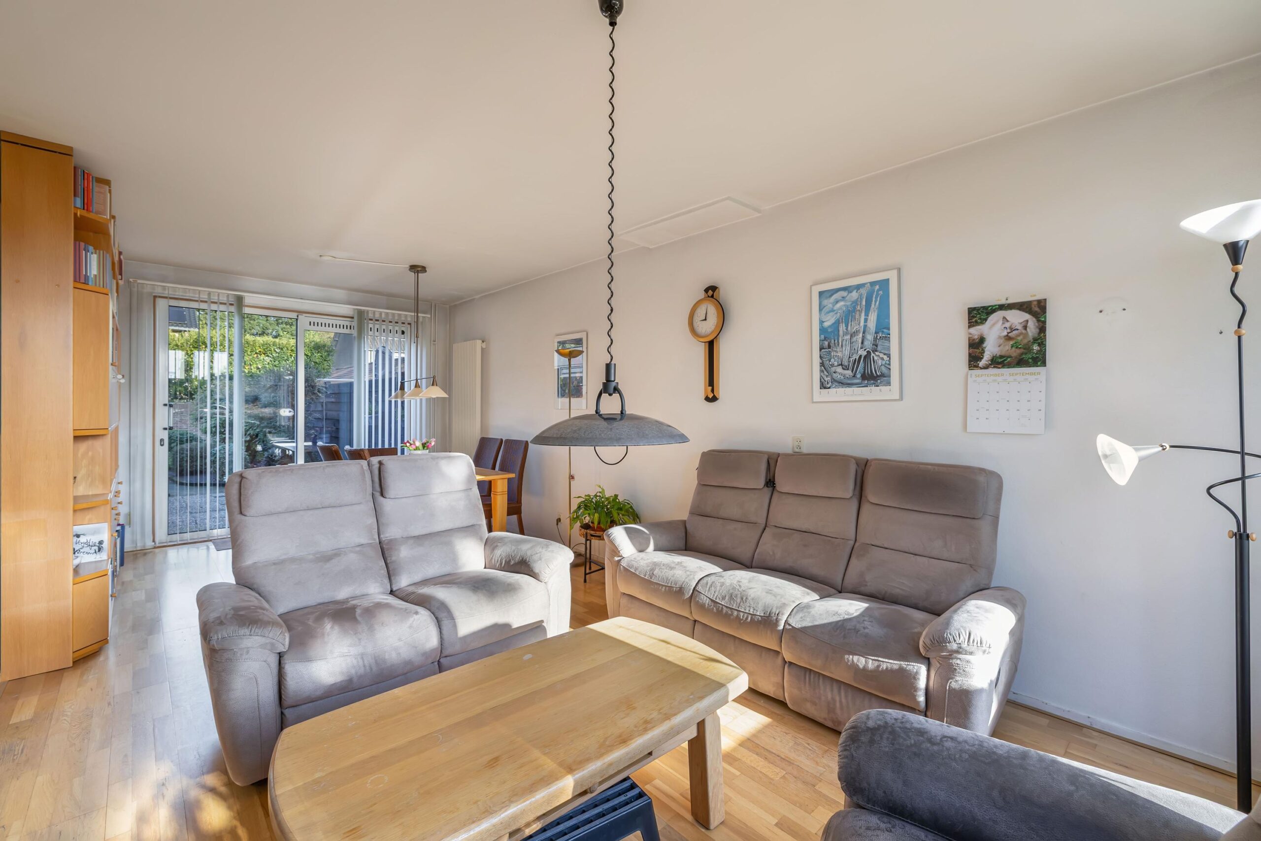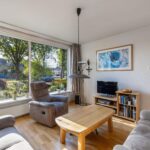 De woonkamer is zeer sfeervol en heeft een schuifpui naar de achtertuin.