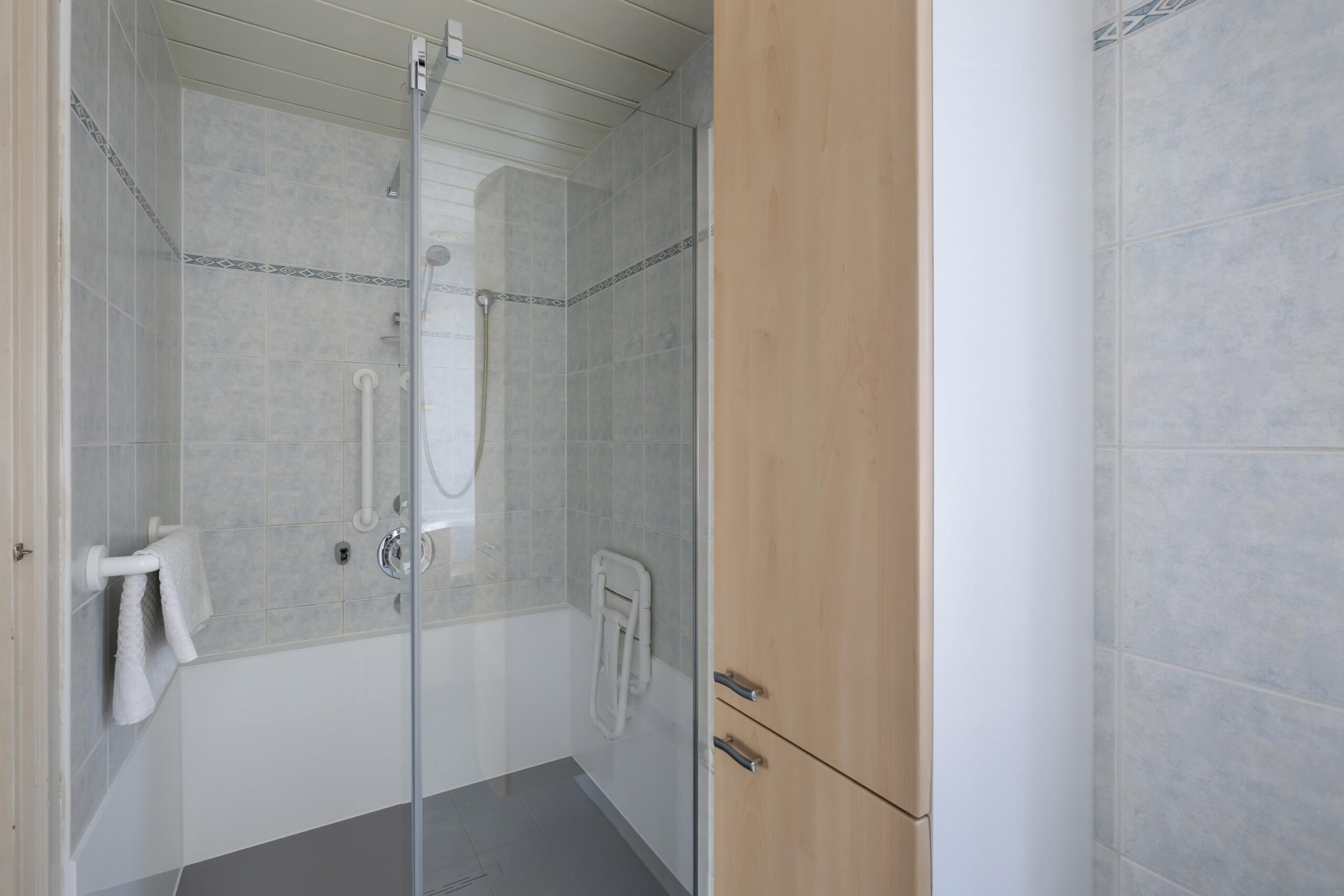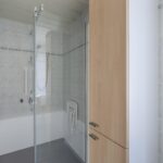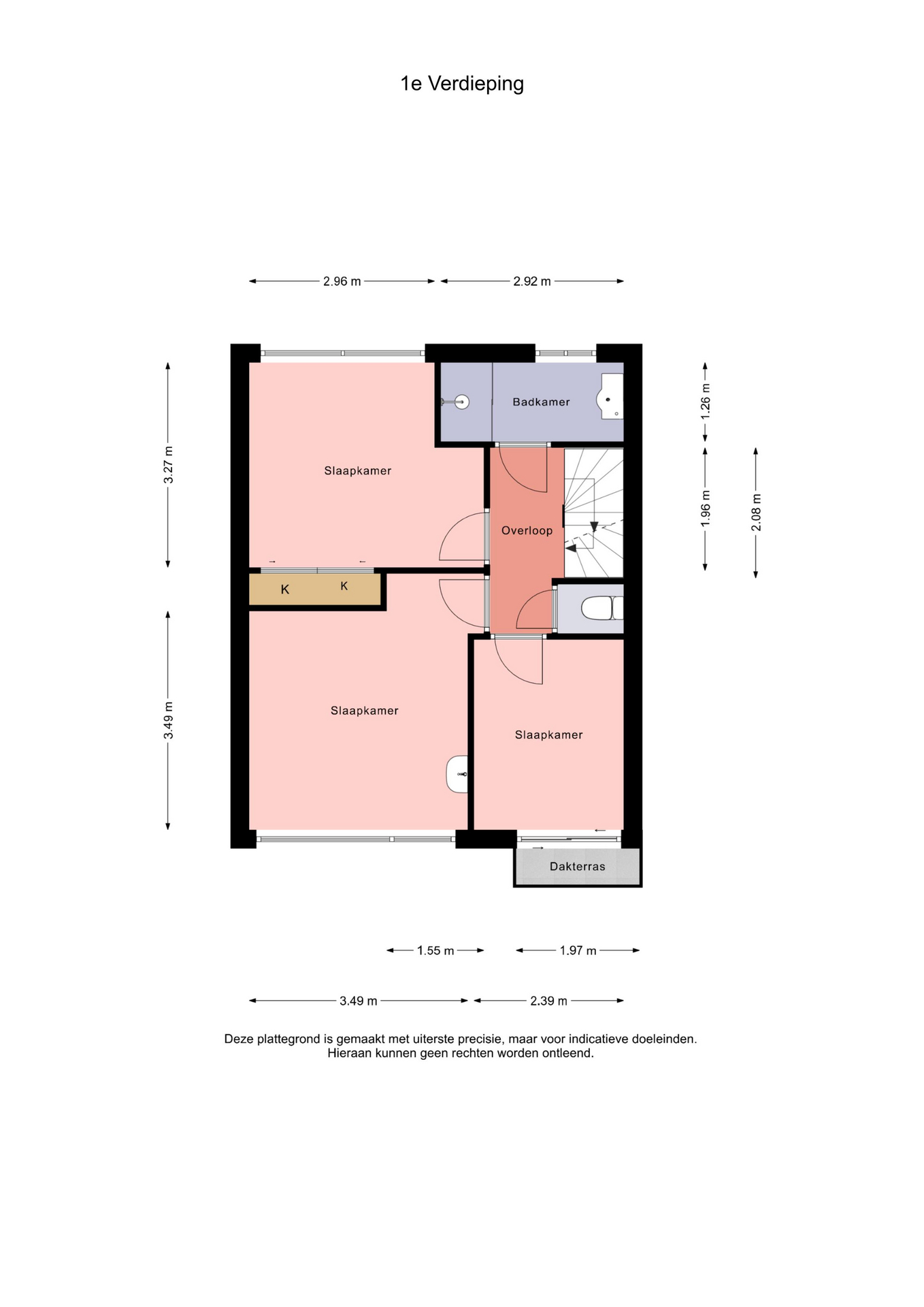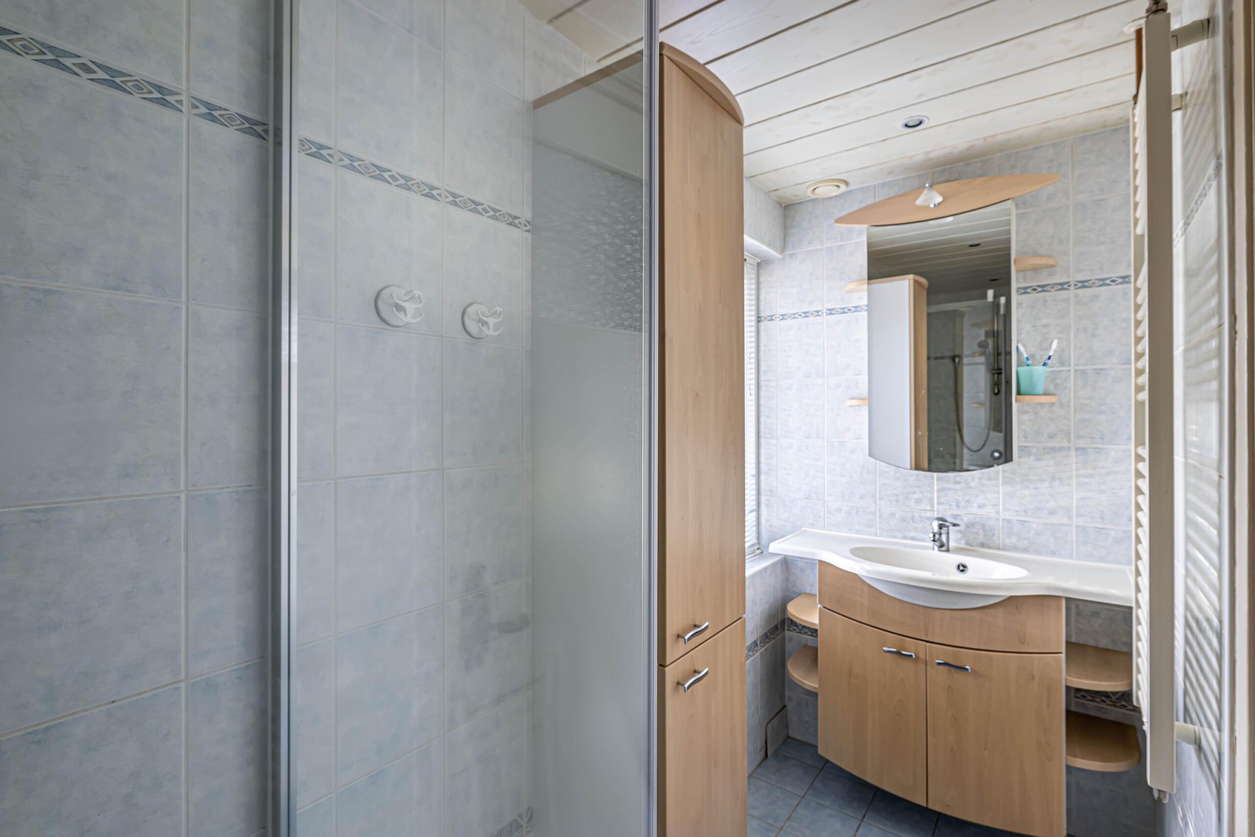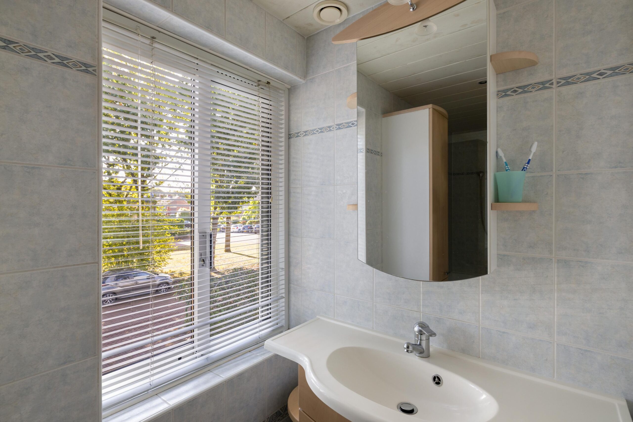 Overloop, toilet, 3 slaapkamers waarvan een voorzien van vaste kast en één toegang geeft tot een balkon aan de achterzijde. De badkamer is voorzien van een douche, wastafel en handdoekradiator.