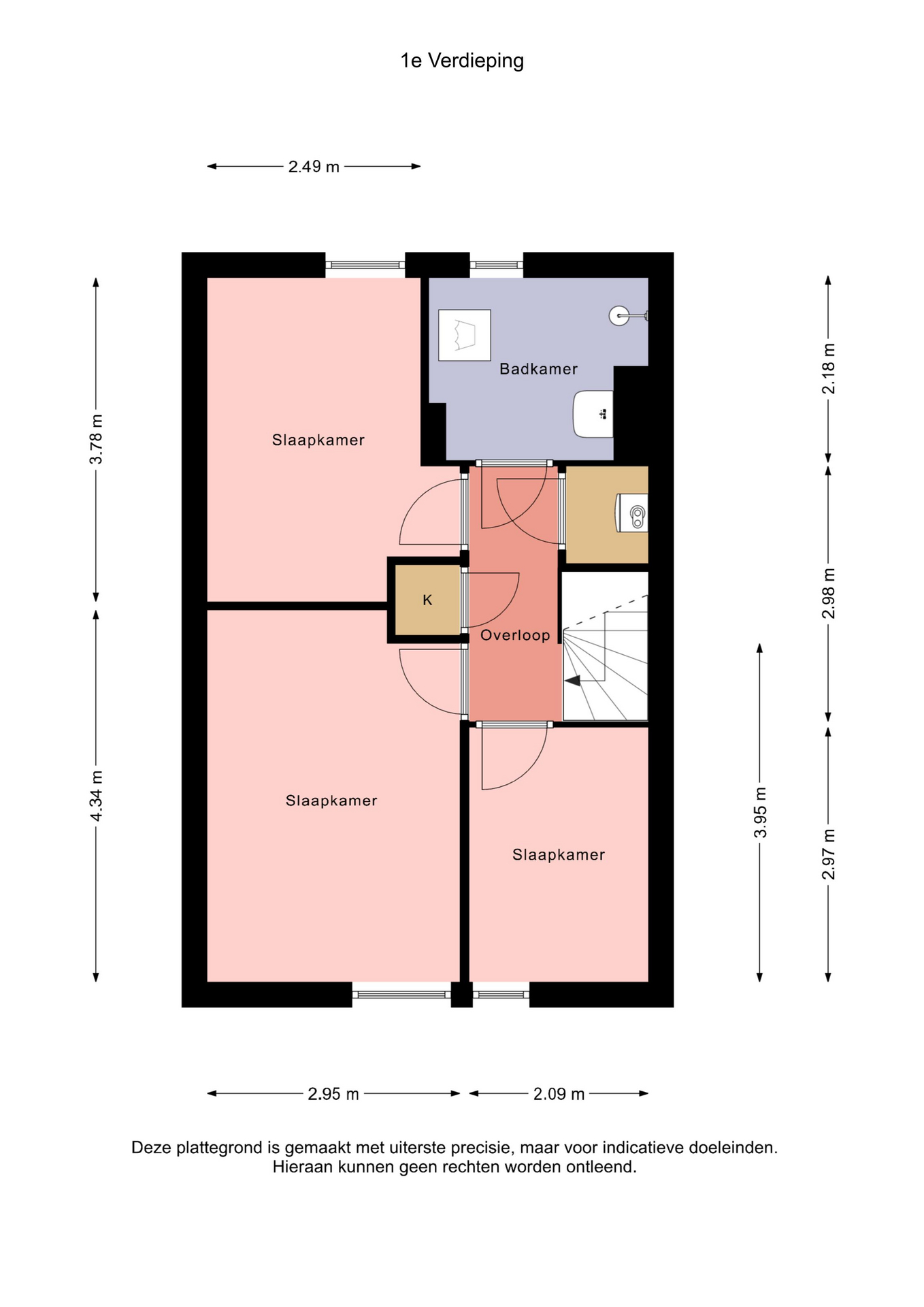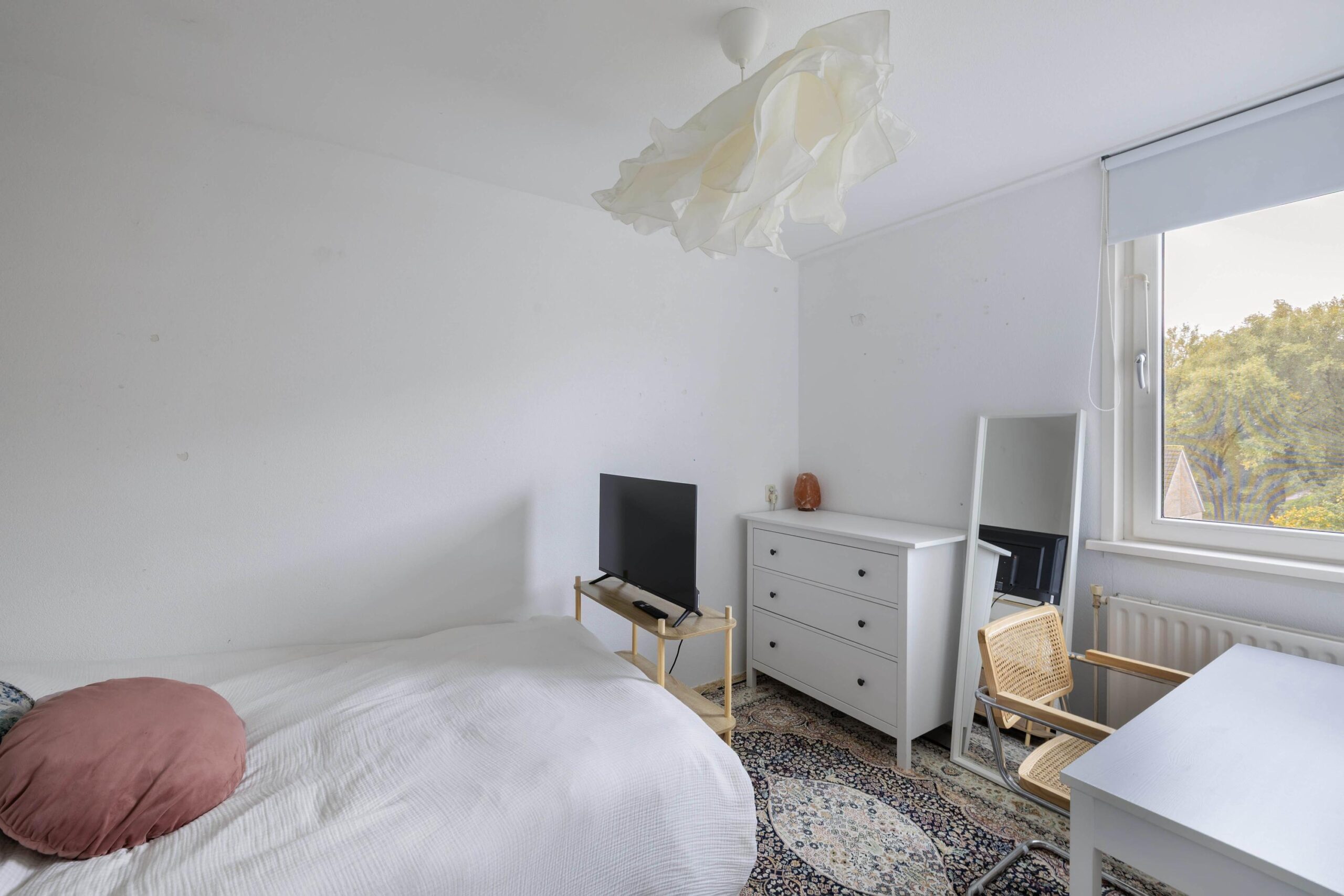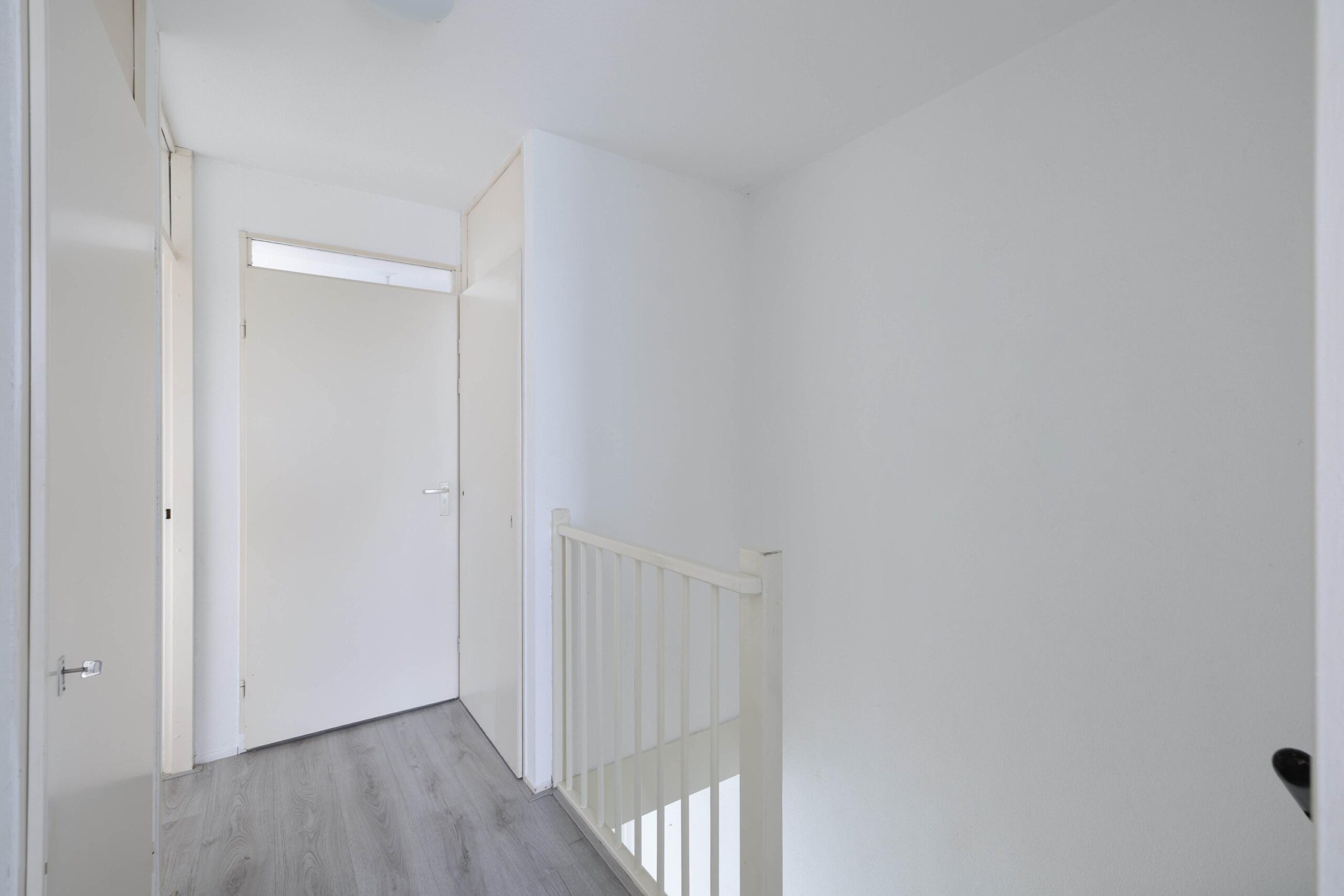 Overloop met twee vaste kasten, waarvan één met de cv-installatie (2022). Drie slaapkamers van goed formaat, waaronder een ruime hoofdslaapkamer en twee kamers geschikt als kinder- of werkkamer.